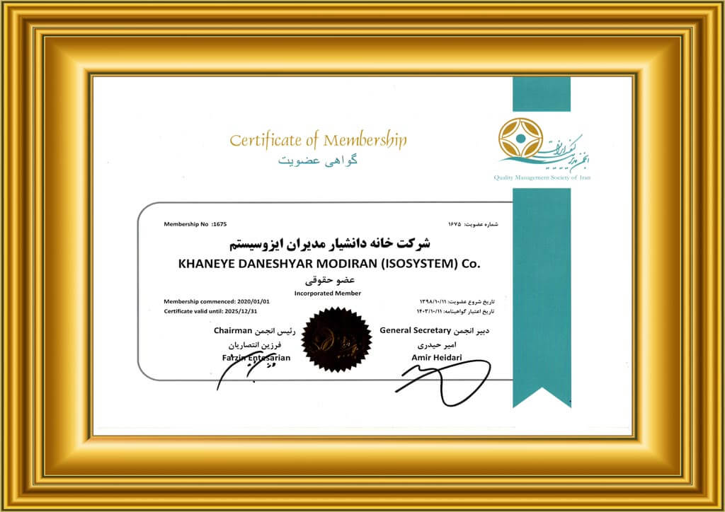 - مجوز عضویت در انجمن مدیریت کیفیت ایران